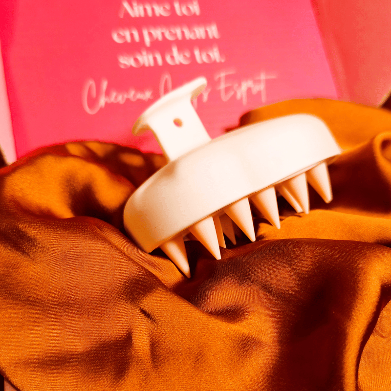 Je te conseille de masser ton cuir chevelu 2 à 3 fois par semaine, pendant environ 2 à 5 minutes. Tu peux aussi l’utiliser chaque fois que tu fais ton shampoing, en remplacement de tes doigts.
